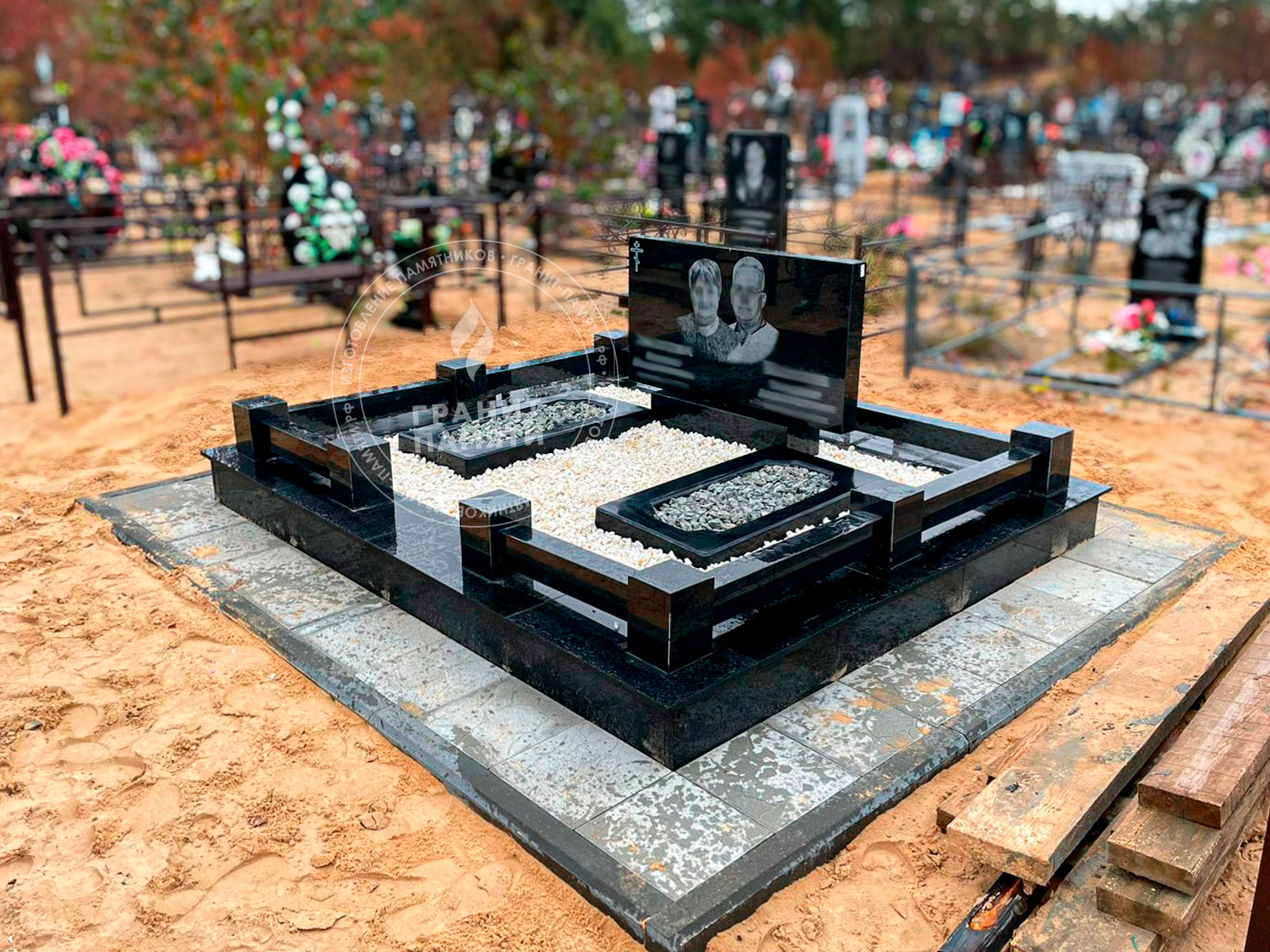 Двойной гранитный памятник, прямой